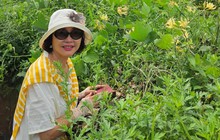 "Bà bầu" Joyce Phạm thì hí hửng vì vớ được chậu mai mini ưng ý