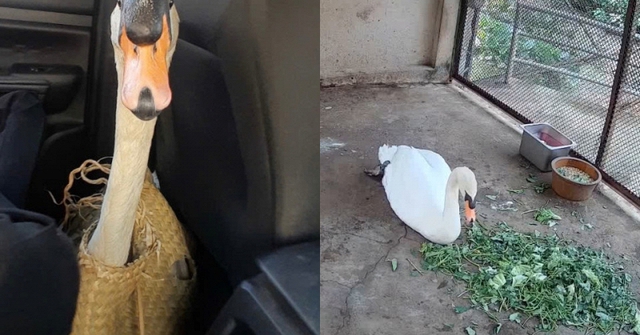 "Thiên nga bị cuộn đầu, nhét trong ba lô, dẫn đến stress nặng. Ngoài ra, do bị bán vào một trại buôn nên hiện chưa thể đưa ngay về chuồng nuôi mà phải cách ly, theo dõi sức khỏe" - bà Giang chia sẻ.