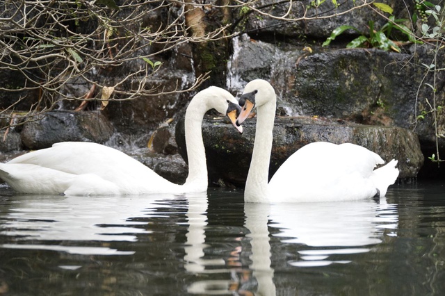 Sau hành trình trở về, cặp thiên nga lại sánh đôi trên mặt hồ quen thuộc tại Thảo Cầm Viên.