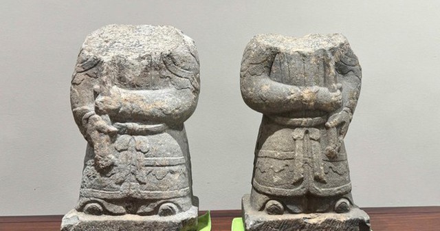Cặp tượng cổ được tìm thấy trong tình trạng mất phần đầu. Ảnh: CSCC