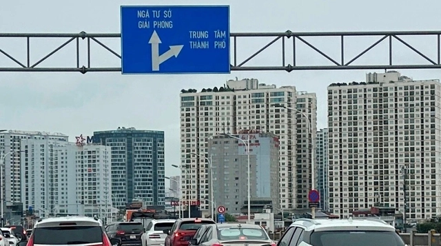 Lượng xe tăng trên cầu Vĩnh Tuy khiến các tuyến đường, nút giao hai đầu cầu cũng ùn tắc theo.
