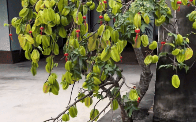 Không quá lời khi nói có người sẵn lòng mua cây khế này với giá 10 triệu đồng, thậm chí cao hơn. Cây không cao lớn, chỉ ngang tầm đầu người nhưng bù lại là sai quả đến mức nhìn đâu cũng thấy khế. Quả chín trĩu cành, to đều, treo lủng lẳng, nhìn vào là thấy đã mắt.