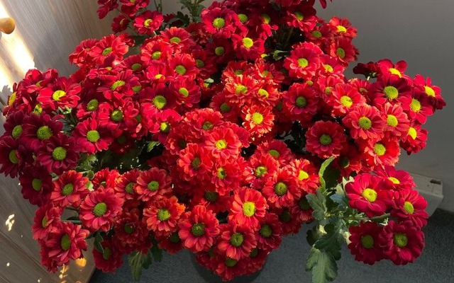 Điểm đặc biệt của giống cúc này là khi nở đồng loạt, cả chậu hoa tạo hiệu ứng thị giác rất mạnh. Dù đặt ở phòng khách rộng, sảnh lớn hay khu vực cửa ra vào, chỉ cần một chậu cúc Pico đỏ cũng đủ làm không gian sáng bừng, sang trọng hơn hẳn. Chính vì vậy, nhiều gia đình thường chọn cúc Pico đỏ làm hoa chủ đạo dịp Tết.