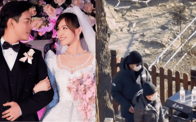 "Team qua đường" bắt gặp La Tấn đưa mẹ ruột đi cầu phúc, trùng hợp là "vợ màn ảnh" của anh cũng có mặt tại đây. Ảnh: Weibo.