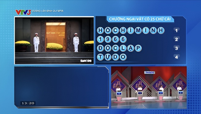 Cụ thể, trong trận thi quý được phát sóng chiều 26/4 (tức ngày 10/3 âm lịch - Giỗ Tổ Hùng Vương), với sự góp mặt của 4 thí sinh gồm Đoàn Trí Anh (THPT Đan Phượng, Hà Nội), Lý Thái Dương (THPT chuyên Hùng Vương, Phú Thọ), Trần Đức Nguyên (THPT chuyên Khoa học Tự nhiên - Đại học Khoa học Tự nhiên, Đại học Quốc gia Hà Nội) và Nguyễn Sư Minh Khôi (THPT Đông Hà, Quảng Trị).