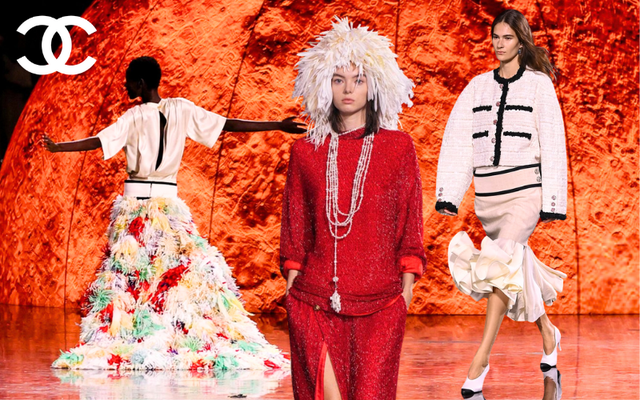 Matthieu chọn Grand Palais - nơi gắn liền với những show hoành tráng thời Karl làm sân khấu đầu tiên của mình, dựng bối cảnh vũ trụ với những hành tinh xoay quanh. Không khí ấy khiến nhiều người ngay lập tức nhớ lại "phép màu" Lagerfeld từng mang đến, đồng thời cũng thấy rõ dấu ấn riêng của anh: tươi mới, sắc sảo và rời xa sự an toàn của Virginie Viard.