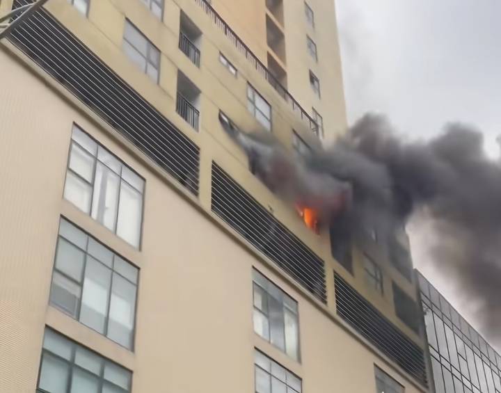 Ngọn lửa bùng lên từ tầng 6 chung cư trên phố Vương Thừa Vũ, cảnh sát hướng dẫn 3 người thoát nạn an toàn.