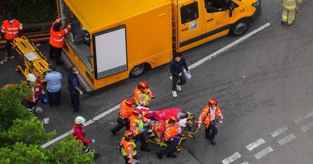 Lực lượng cứu hỏa đưa người bị thương đi cấp cứu. Ảnh: HKFP