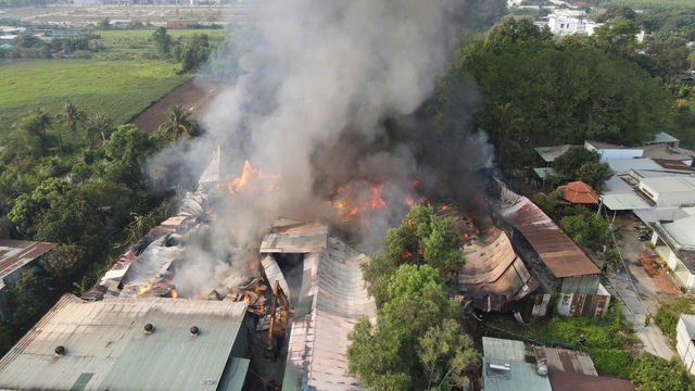 Ngọn lửa bùng phát dữ dội tạo thành cột khói đen dày đặc bốc cao. Phần mái nhà xưởng bị đổ sập, kèm theo nhiều tiếng nổ lớn khiến người dân sống xung quanh hoảng sợ. Nhiều hộ gia đình nhanh chóng di chuyển đồ đạc ra bên ngoài, đồng thời rời khỏi khu vực để đảm bảo an toàn.