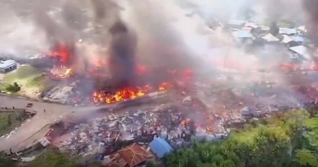 Hình ảnh từ máy bay không người lái cho thấy ngọn lửa bao trùm khu dân cư ở Karubaga, khói dày đặc bốc lên trời. Không có thương vong, nhưng thiệt hại ước tính khoảng 22 tỷ rupiah.