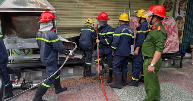 Lực lượng chức năng nhanh chóng phá cửa cuốn, tiếp cận bên trong, dập tắt đám cháy, đồng thời kiểm tra, ngăn nguy cơ cháy lan.