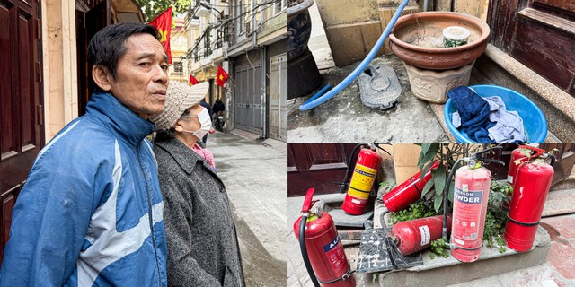 Ông H. cùng người dân trong ngõ 82 Trần Cung dùng thang, bình cứu hoả, khăn mặt thấm nước... để hỗ trợ nhiều người thuê trọ thoát khỏi vụ cháy nguy hiểm. (Ảnh: Viên Minh)