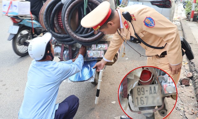 Đến 10h30 cùng ngày, tổ công tác tiếp tục phát hiện anh V.T.N. (SN 1972, trú tại Hưng Yên) điều khiển xe máy chở hàng hóa nhưng biển số bị che khuất.