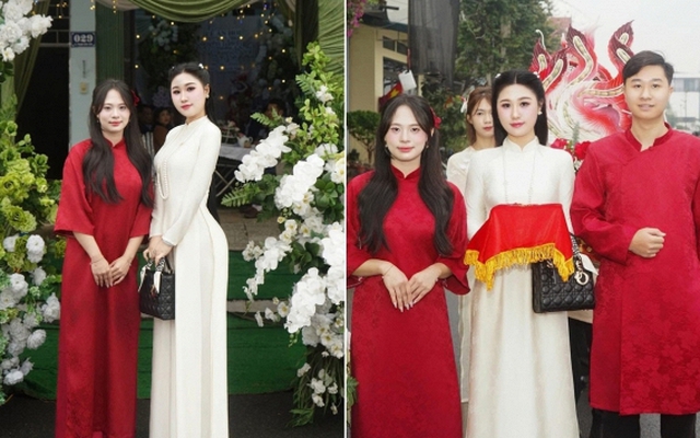 Theo đó, cô gái diện một chiếc áo dài màu trắng kem, đảm nhận vai trò bê lễ trong lễ ăn hỏi của em trai. Đáng chú ý, trong một số khung hình, cô gái được nhận xét là thiếu tinh tế khi chọn đứng giữa cô dâu chú rể. Hay một số bình luận khác thì cho rằng cô gái này chỉnh ảnh “quá lố”, chỉ chăm chút cho bản thân chứ không để ý đến hai nhân vật chính.