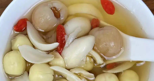 Món thứ hai là chè long nhãn, bách hợp và hạt sen, một món ngọt thanh có tác dụng hỗ trợ giấc ngủ và cải thiện sắc diện. Long nhãn cung cấp sắt và vitamin nhóm B, giúp giảm tình trạng thiếu máu nhẹ, trong khi bách hợp chứa colchicine với đặc tính chống oxy hóa. Hạt sen bổ dưỡng và giúp an thần nhẹ.