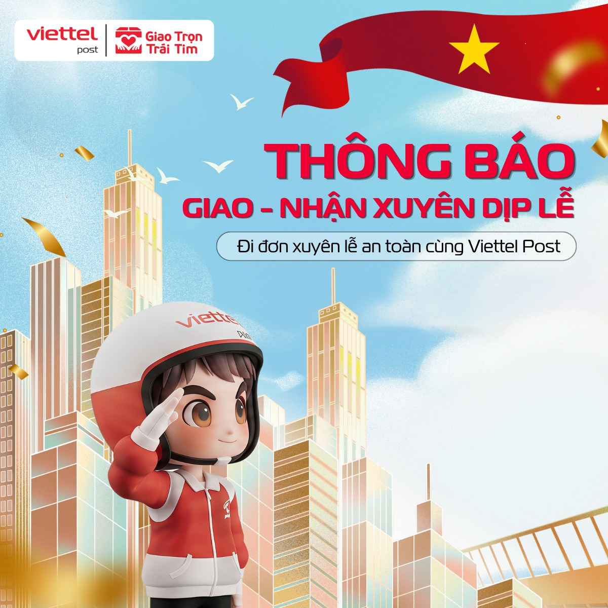 Nhiều cái tên quen thuộc như J&T Express Vietnam, Giao Hàng Nhanh - GHN, Viettel Post, Vietnam Post - Bưu điện Việt Nam,... đều hoạt động xuyên suốt thời gian nghỉ lễ sắp tới.