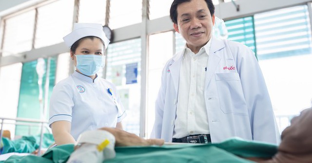 Các bác sĩ thăm hỏi bệnh nhân sau phẫu thuật