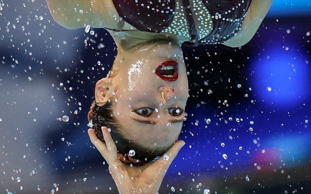 Đội tuyển Tây Ban Nha biểu diễn ở chung kết tự do đồng đội bơi nghệ thuật tại Giải vô địch Thủy sinh Thế giới ở Singapore, ngày 20/7/2025 (Ảnh: REUTERS/Hollie Adams)