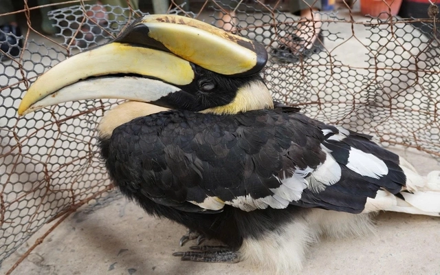 Qua xác minh, cơ quan chức năng xác định đây là chim hồng hoàng (tên khoa học Buceros bicornis), thuộc nhóm IB trong danh mục các loài nguy cấp, quý, hiếm.