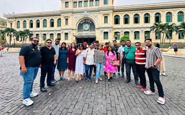 Đoàn khách MICE Ấn Độ tham quan TP HCM. Ảnh: LAM GIANG