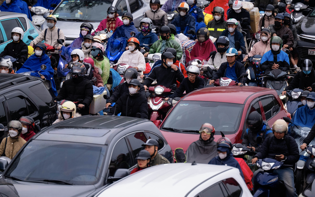 Thời tiết mưa phùn kèm nền nhiệt thấp càng khiến việc đi lại thêm phần vất vả