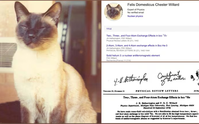 Câu chuyện bắt đầu khi một chú mèo mang tên F.D.C. Willard bất ngờ được ghi nhận là đồng tác giả của một tập luận án vật lý học có tiêu đề “Two-, Three-, and Four-Atom Exchange Effects in bcc³He”, đăng trên tạp chí Physical Review Letters. Nghiên cứu này tập trung vào kết quả thí nghiệm nhằm tìm hiểu tập tính của đồng vị helium-3 trong các điều kiện nhiệt độ khác nhau và có giá trị tham chiếu kéo dài đến tận ngày nay.