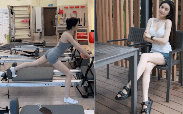 Trong phòng tập, Chu Thanh Huyền diện một bộ đồ tập bó sát màu xám tro, thiết kế tối giản nhưng tôn dáng đỉnh cao, thực hiện động tác Pilates chuyên nghiệp. Trang phục không hề cầu kỳ, nhưng chính sự tối giản ấy lại càng làm nổi bật vóc dáng chuẩn chỉnh: vòng eo gọn gàng, bắp tay săn chắc, đôi chân dài và thon gọn không tì vết. Cách búi tóc cao gọn gàng để lộ phần cổ thanh thoát và bờ vai mảnh mai của bà xã Quang Hải khiến hội mẹ bỉm sữa ao ước.