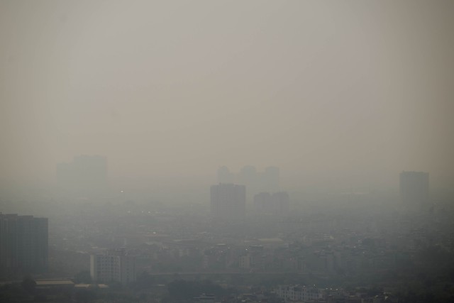 Đầu giờ chiều, bầu trời Hà Nội vẫn phủ mù dày đặc, nhiều nơi mờ mịt kèm theo chất lượng không khí suy giảm rõ rệt.