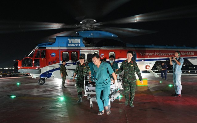 Tổ cấp cứu hàng không đã đảm bảo an toàn tuyệt đối trong vận chuyển cả 2 bệnh nhân từ đảo về đất liền