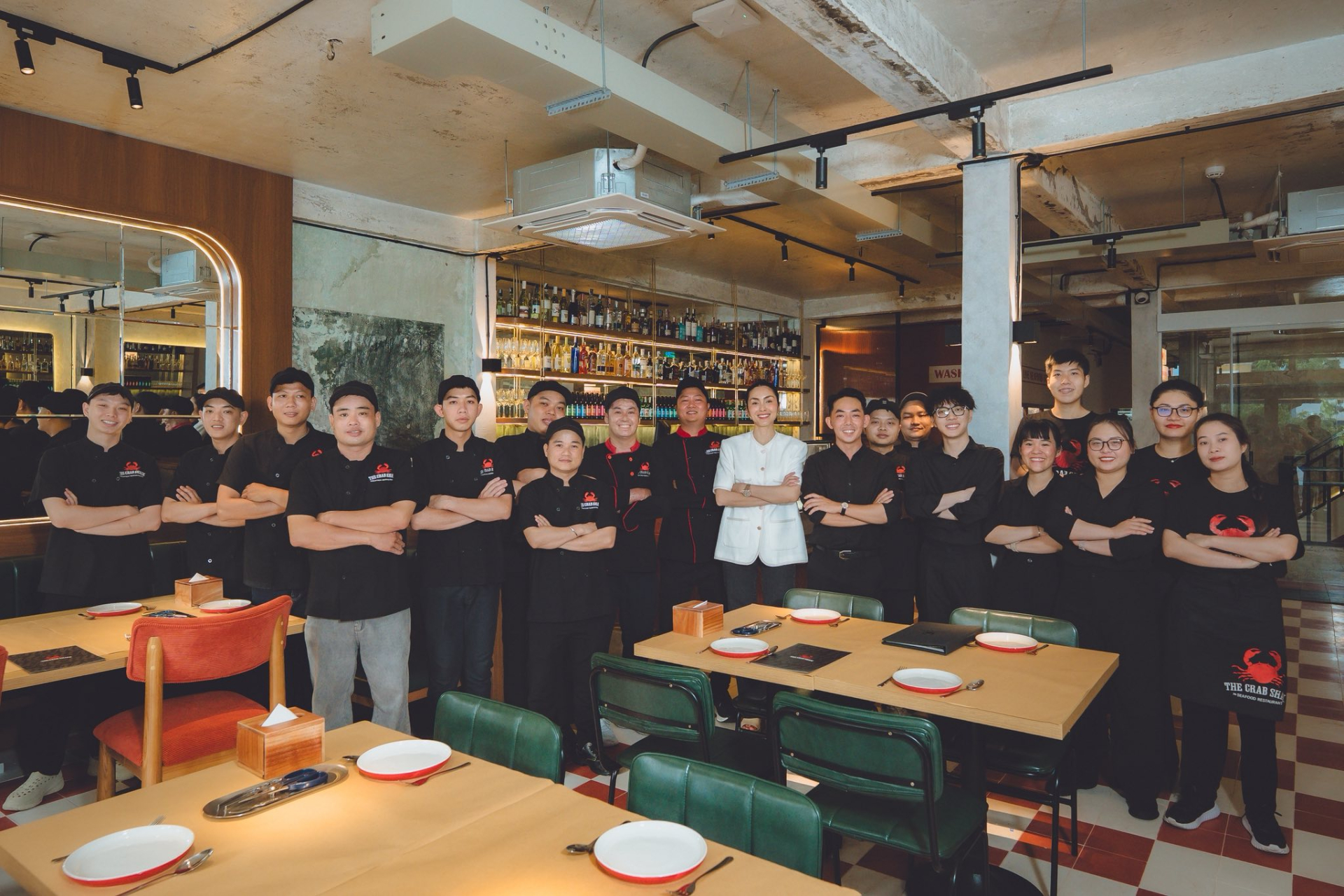 Tăng Thanh Hà cùng đội ngũ nhân viên The Crab Shack