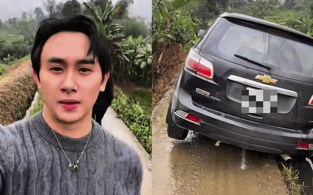 Phạm Kiên gặp sự cố khi di chuyển bằng ô tô ngày đầu năm mới. Nguồn: FBNV