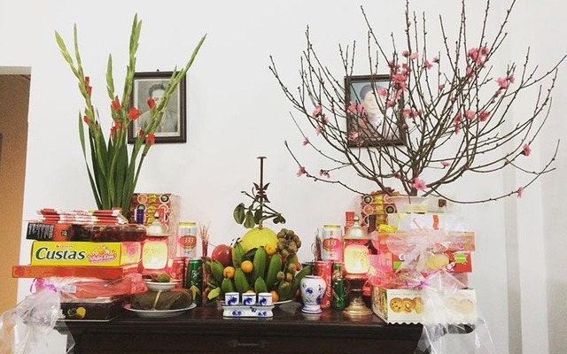 Theo phong tục của người Việt Nam, trong mỗi gia đình đều có một bàn thờ tổ tiên, ông bà, tùy vào từng gia đình mà có cách trang trí và sắp đặt khác nhau. Cứ đến cuối năm, mỗi gia đình đều lau dọn bàn thờ để chuẩn bị đón Tết, sau đó đến chiều 30 tháng Chạp, thức ăn và trái cây được xếp lên bàn thờ dâng lên ông bà tổ tiên để mong ông bà tổ tiên về ăn Tết cùng với gia đình.