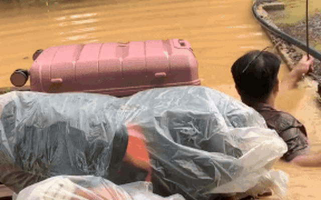 Theo đó, một tài khoản có tên Hkn.ngann đã đăng đoạn clip ghi lại cảnh được bố kéo bè, vượt qua vùng bão lũ để kịp chuyến bay đi du học. Trên bè còn đem theo rất nhiều va li, hành lý nhưng người bố vẫn cố gắng hết sức, men theo lan can để vượt qua chỗ ngập lụt, tiễn con gái ra sân bay an toàn.