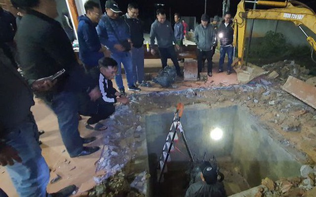 Công an đào bới khu vực chôn đồ vật được cho là đã làm phép