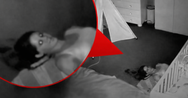 Theo hình ảnh từ camera, vợ anh nằm ngửa, mắt mở to, lặng lẽ bò từng chút một ra khỏi phòng, trông chẳng khác gì cảnh trong phim ma.