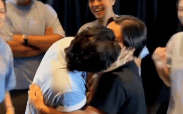 Trong khi mọi người xung quanh chưa kịp trầm trồ, nam diễn viên đặt tay lên má đối phương và bất ngờ trao một nụ hôn khiến cả khán phòng vỡ òa. Màn tung hứng ngẫu hứng nhưng tròn trịa này lập tức khiến dàn cast lẫn khán giả bên dưới reo hò, tạo nên một trong những khoảnh khắc đáng nhớ nhất của buổi cinetour.