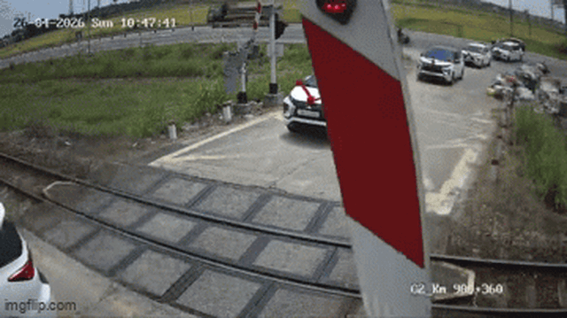 Khi một số ô tô con đã qua khỏi khu vực đường ray, tín hiệu cảnh báo tàu đến kích hoạt, gác chắn bắt đầu hạ xuống. Tuy nhiên, một tài xế vẫn điều khiển ô tô chạy theo. Khi xe vừa đến khu vực giao cắt, barie gác chắn đã hạ hoàn toàn, khiến phương tiện bị kẹt lại sát đường ray. Toàn bộ diễn biến đã được camera an ninh ghi lại.
