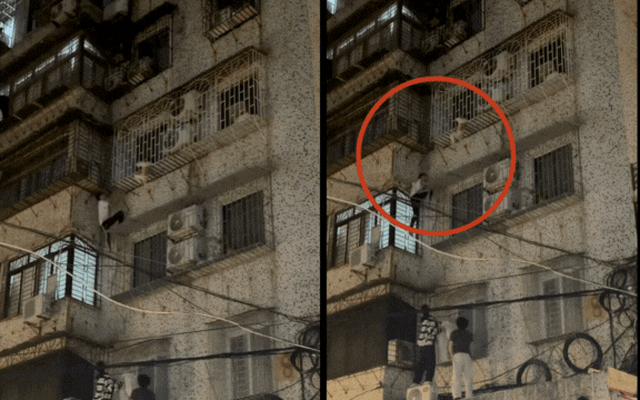 Clip nghẹt thở: Nam thanh niên leo tường chung cư, giải cứu bé trai kẹt đầu treo lơ lửng ngoài “chuồng cọp” tầng 4