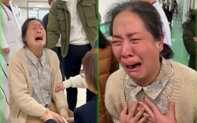 Người đăng tải còn chú thích rằng nhân vật trong video đến từ tỉnh Cam Túc, tây bắc Trung Quốc. Trong các đoạn clip, người phụ nữ đứng khóc giữa hành lang bệnh viện, xung quanh là những người khác thờ ơ quan sát.