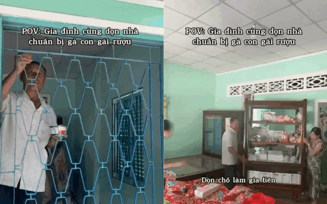 Công cuộc dọn dẹp thật sự công phu và đầy tâm huyết. Trong clip của cô dâu miền Tây, người thân tất bật sơn sửa phòng, cửa sổ, lắp bàn mới, chỉnh sửa đồ đạc… Từng chi tiết nhỏ đều được chăm chút tỉ mỉ, tạo nên khung cảnh bận rộn nhưng ấm áp, điển hình cho một đám cưới miền Tây