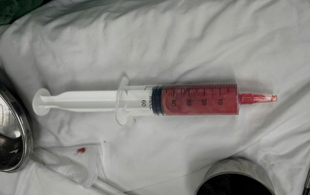 Dịch mủ được hút ra từ mô vú trong ca phẫu thuật. Ảnh: BVCC