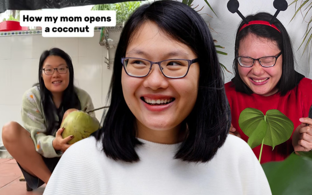 Về Việt Nam, cô chia sẻ về cách mẹ mình bổ dừa, khu vực rửa bát bên ngoài bếp vì bồn rửa quá nhỏ,... (Ảnh chụp màn hình/ @uyenninh)