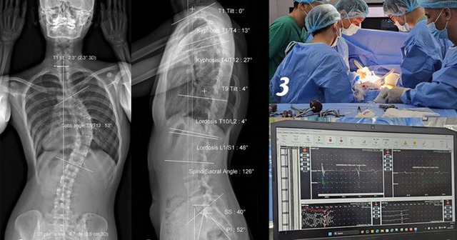 Trong quá trình phẫu thuật, các bác sĩ đã tính toán kỹ lưỡng, nắn chỉnh các đốt sống bằng hệ thống vít ốc chuyên dụng để giúp cột sống của cô trở lại mức sinh lý nhất có thể. Sau 4 giờ, ca phẫu thuật thành công.
