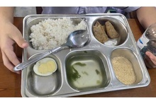 Hình ảnh khay cơm của học sinh bán trú ở Trường Tiểu học số 1 Ba Đồn - đang gây tranh cãi