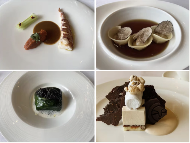 Thực đơn bao gồm há cảo nhân nấm cục truffle và gà đen Yeongwol - loại gà đặc sản nổi tiếng của tỉnh Gangwon. Đây là giống gà bản địa của Hàn Quốc với đặc trưng toàn thân màu đen, từ lông, da, thịt cho tới xương.