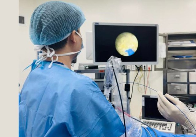Ngay sau khi xác định nguyên nhân, ê-kíp điều trị đã tán sỏi niệu đạo bằng phương pháp nội soi. Đây là kỹ thuật ít xâm lấn, giúp phá vỡ viên sỏi và giải quyết tình trạng tắc nghẽn trong đường tiết niệu mà không cần phẫu thuật mở.