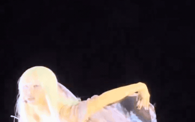 Bộ bodysuit ánh kim ôm sát cơ thể, được xử lý bằng những chi tiết uốn lượn 3D như sinh vật ngoài hành tinh, tạo cảm giác như những lớp "xương sống" hoặc cấu trúc sinh học đang chuyển động theo từng nhịp bước. Chất liệu ánh kim phản quang dưới ánh đèn LED khiến cơ thể cô trở thành trung tâm của mọi hiệu ứng ánh sáng, gần như phát sáng trong không gian tối của sân khấu.