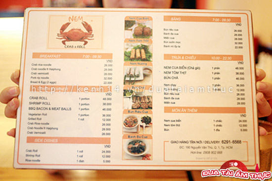 "Nem cua biển" chỉ mới thành lập được hơn bốn tháng thôi, nhưng đã rất nổi tiếng bởi “Nem cua, bún chả, chả giò tôm thịt, lẩu cua…” đó nha. Tất cả các món ở đây đều được chế biến một cách công phu, mang đến cho người ăn một hương vị đậm đà chính thống, đúng nguyên gốc xuất xứ của từng món, khiến bạn ăn một lần là nhớ hoài hoài luôn á.