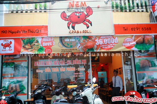 Đặc sản “Nem cua biển” của quán có cách chế biến, hương liệu đều không giống như các món nem nào tại các quán ở Sài Gòn. Với chiếc nem vuông vức nằm gọn trong lòng bàn tay, được chiên đúng độ lửa càng làm chiếc nem cua thêm phần óng ánh sắc vàng. Món ăn sẽ càng thêm tinh tế khi được hoà hợp cùng chén bún và món nước chắm đu đủ, cà rốt cực lạ. Chắc chắn sẽ tăng thêm độ ngon ngọt của cua trong từng miếng nem.