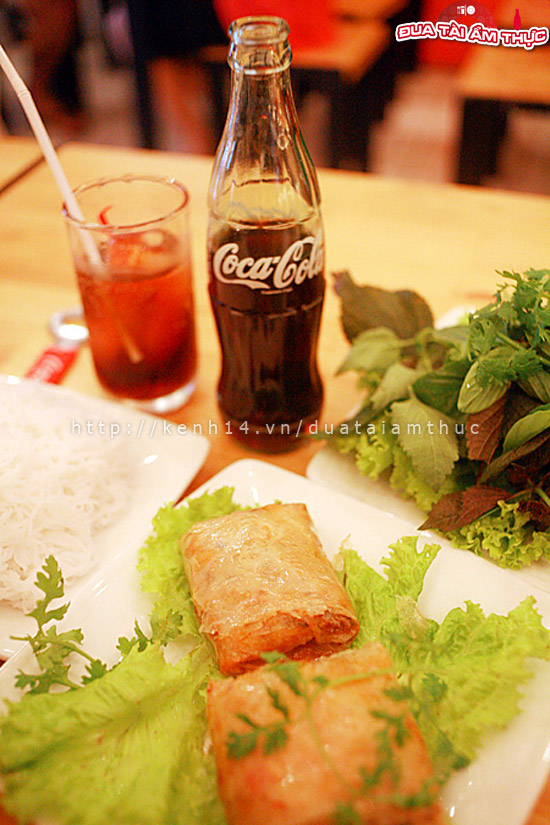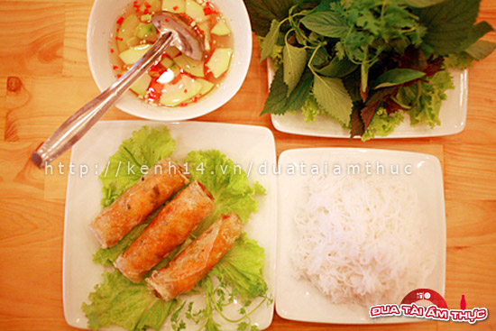 Nem tôm thịt kẹp với bún trắng, rau xanh…![]()